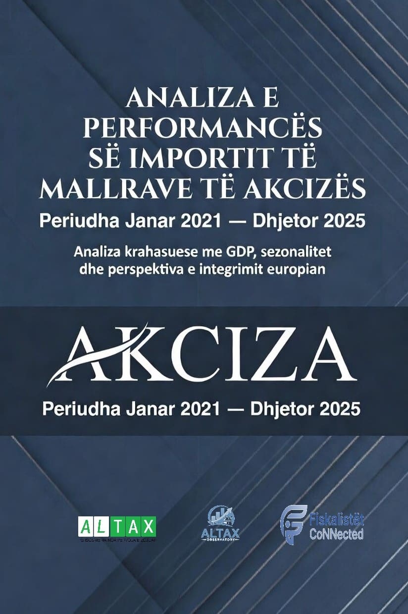 ALTAX ka publikuar studimin e detajuar “Analiza e Performancës së Importit të Mallrave të Akcizës”, i cili ofron një pasqyrë të qartë dhe të bazuar në të dhëna zyrtare doganore e fiskale mbi evolucionin e importeve të mallrave kryesore të akcizës (karburantet si nafta motorike dhe benzina, duhani, alkooli dhe birra) gjatë periudhës 2021–2025.