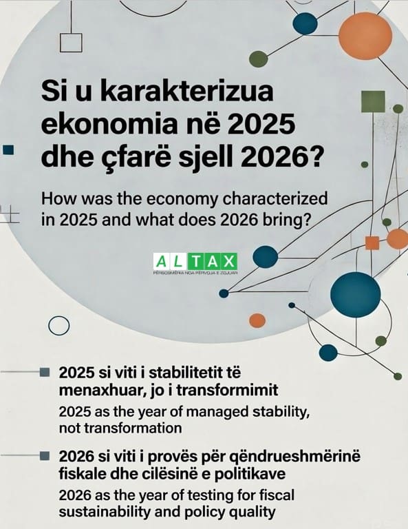 Në përfundim, ALTAX thekson se viti fiskal 2025 siguroi stabilitet, por jo transformim, ndërsa viti 2026 do të tregojë nëse ky stabilitet mund të shndërrohet në zhvillim të qëndrueshëm.