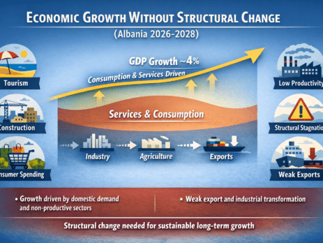The data on real growth and sectoral contribution for the period 2022–2028, according to the Economic Reform Program (ERP) 2026–2028 (in Albanian), show that the Albanian economy, after maintaining a relatively stable growth rate of around 4% per year,...