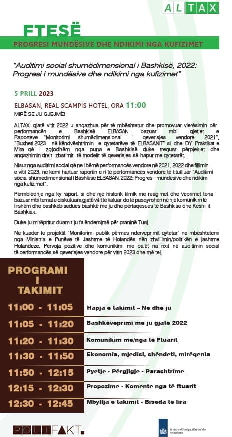 MIRË SE JU GJEJMË! Nisur nga auditimi social që ne i bëmë performancës vendore në 2021, 2022 dhe fillimin e vitit 2023, ne kemi hartuar raportin e ri të performancës vendore të titulluar “Auditimi social shumëdimensional i Bashkisë BERAT, 2022: Progresi i mundësive dhe ndikimi nga kufizimet”. Përmbledhje nga ky raport, si dhe një historik […]