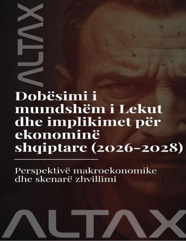 Trajektorja më e mundshme është dobësimi gradual i Lekut (drejt 105–112 ALL/EUR deri në 2028), i cili konsiderohet i shëndetshëm për balancimin ekonomik, por rreziku kryesor mbetet varësia nga sektorë ciklikë.