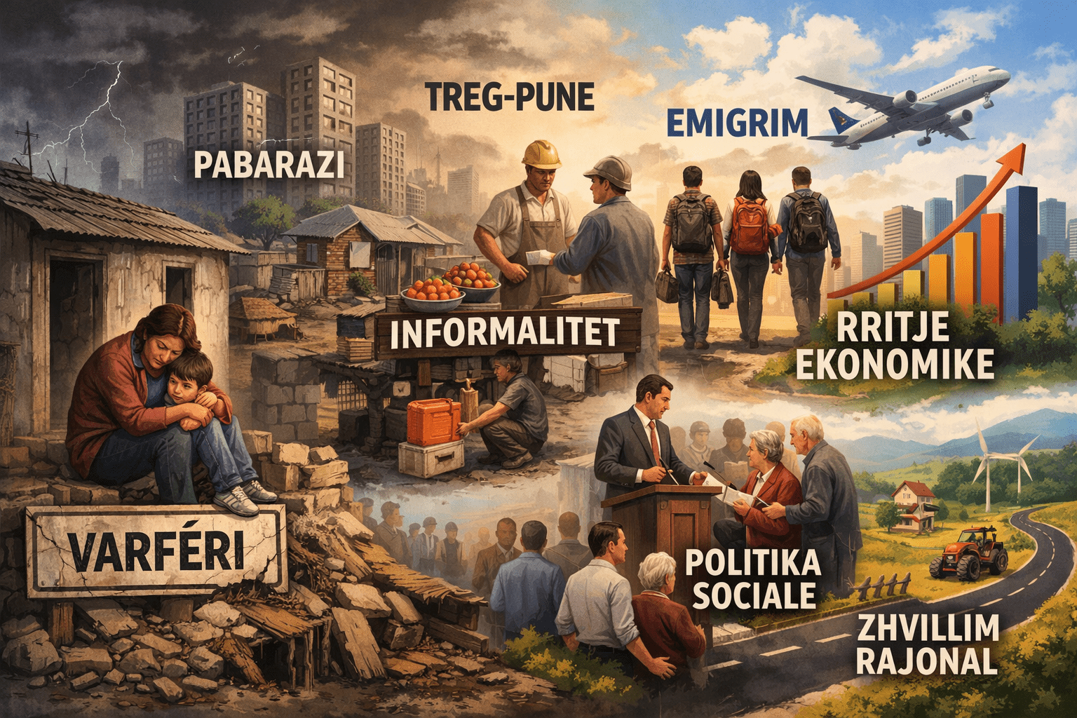 Këtij realiteti i shtohet rritja ekonomike pa përfshirje, e cila, megjithëse ka prodhuar shifra pozitive në nivel makroekonomik, është përqendruar kryesisht në sektorë si ndërtimi, shërbimet dhe turizmi, pa u reflektuar proporcionalisht në rritjen e mirëqenies apo në uljen reale të varfërisë. Si pasojë, përfitimet e rritjes kanë mbetur të kufizuara në një pjesë të shoqërisë.