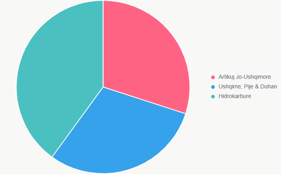 Grafiku më lart tregon se hidrokarburet dominojnë kontributin, duke reflektuar ndikimin e çmimeve të karburanteve. Kjo balancë midis konsumit bazë dhe energjisë sugjeron stabilitet, por varësi nga faktorë të jashtëm.