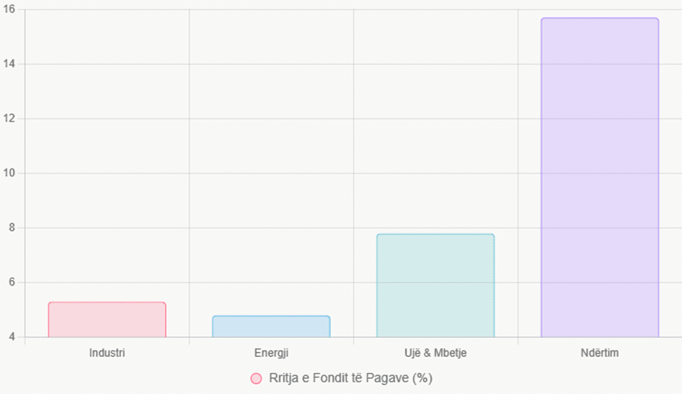 Fondi i pagave rritet në të gjithë sektorët, duke treguar përpjekje për të motivuar punonjësit mes inflacionit. Rritja e lartë në ndërtim sinjalizon konkurrencë për talente, por mund të shtojë presionet inflacioniste.